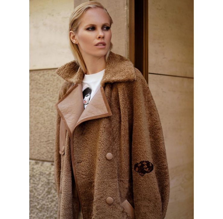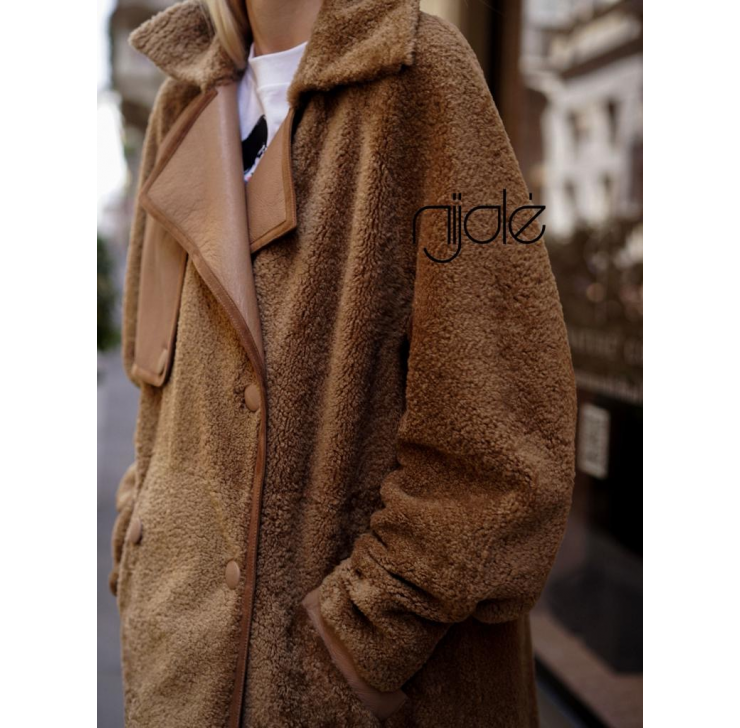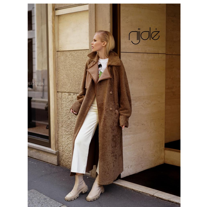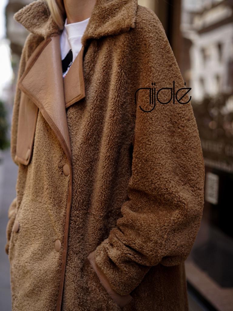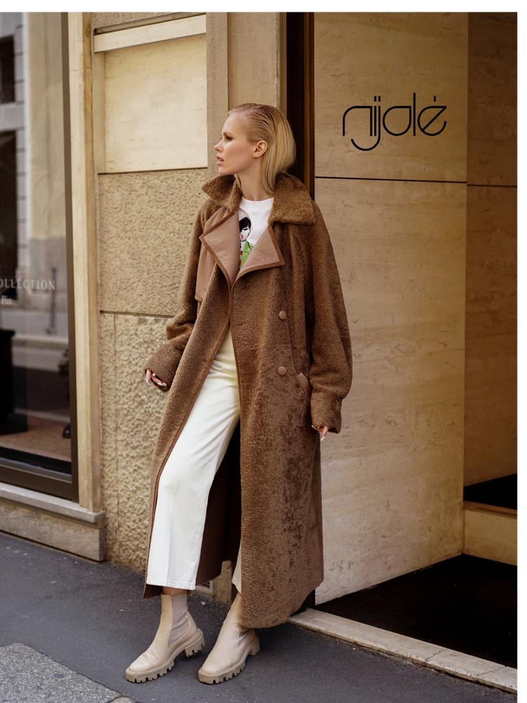 Winter trench coat made of soft double-sided sheepskin.